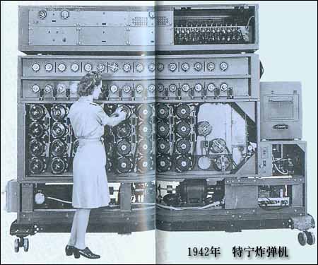 谁制造了历史上第一台电脑,这在历史上还有不少争议,但事实上,1823年英国发明家和对破译密码十分着迷的查尔斯.巴贝奇发明了第一台计算机,但这并非是真正的电脑,计算机的真正发展是数学家阿兰.特宁1942年制作出来的特宁炸弹机(如图1),当时是在二战中为了军方需要而研究。此后,第一台电子计算机叫 ENIAC(电子数字积分计算机的简称,英文全称为 Electronic Numerical Integrator And Computer),它于1946年2月15日在美国宣告诞生。
